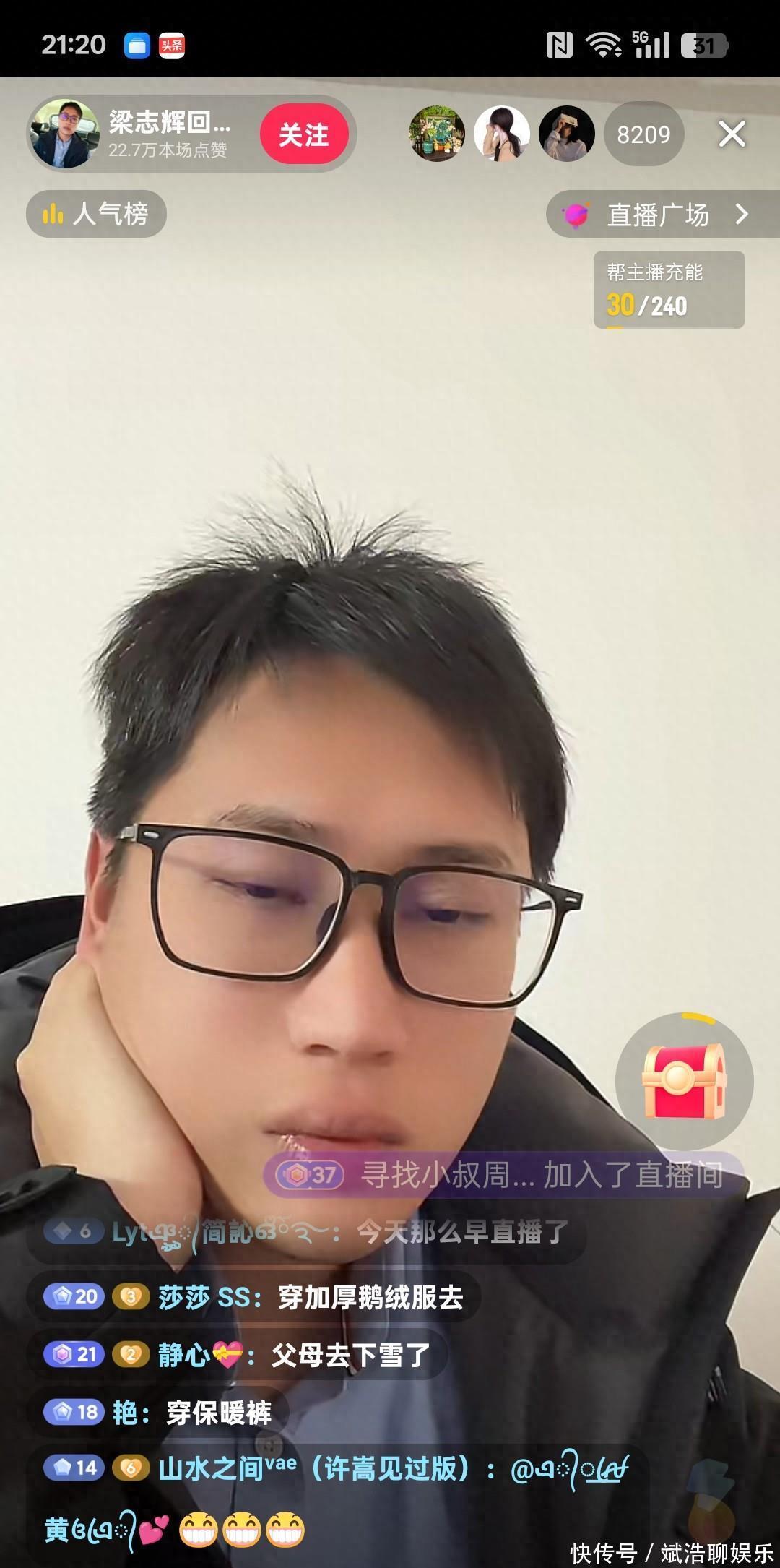 梁志辉真的太真实了,难怪每次我看到他直播都会忍不住进去看会,就觉得好真实,不用演,就这样和大家聊天,还挺逗的,大家也就喜欢和他聊天。